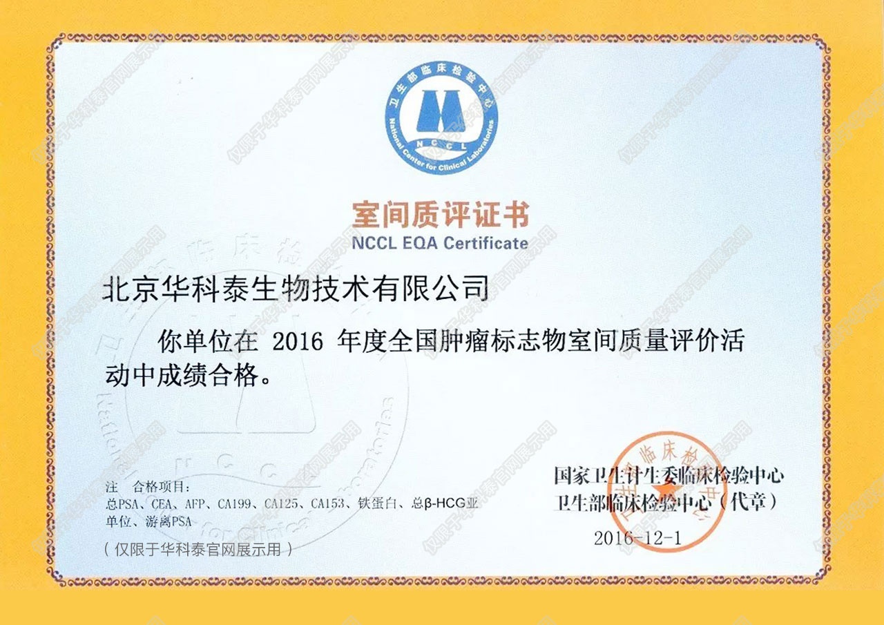 室间质评证书